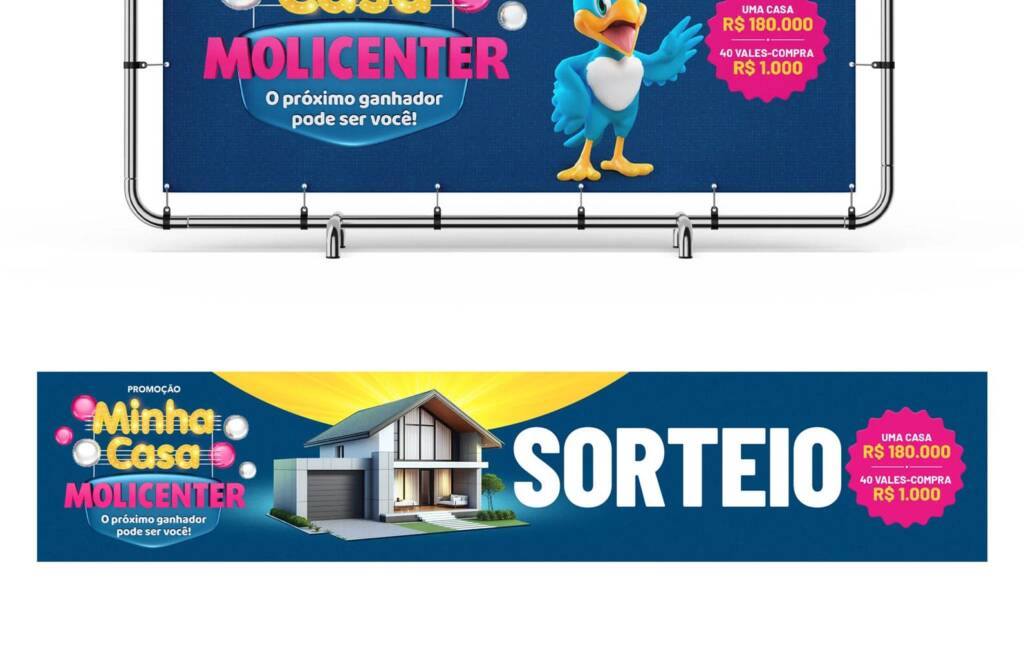 Desenvolvemos a Campanha Minha Casa Molicenter, criando o conceito visual e a identidade da ação promocional. O projeto incluiu a criação dos materiais gráficos e peças de comunicação, com foco em engajamento, clareza da mecânica promocional e forte apelo visual para o público.