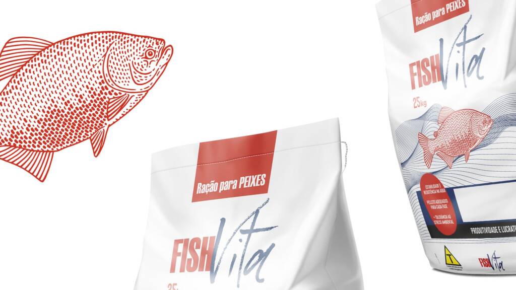 Desenvolvemos o design da embalagem FishVita com foco em clareza, funcionalidade e conexão direta com o universo da piscicultura. A composição visual combina elementos técnicos e gráficos fluidos, remetendo ao movimento da água e ao ambiente natural dos peixes, enquanto a ilustração central reforça a identificação imediata do produto. A hierarquia de informações foi pensada para facilitar a leitura no campo, destacando benefícios como desempenho, produtividade e lucratividade. O resultado é uma embalagem robusta, moderna e confiável, alinhada às necessidades do produtor e à eficiência do manejo.