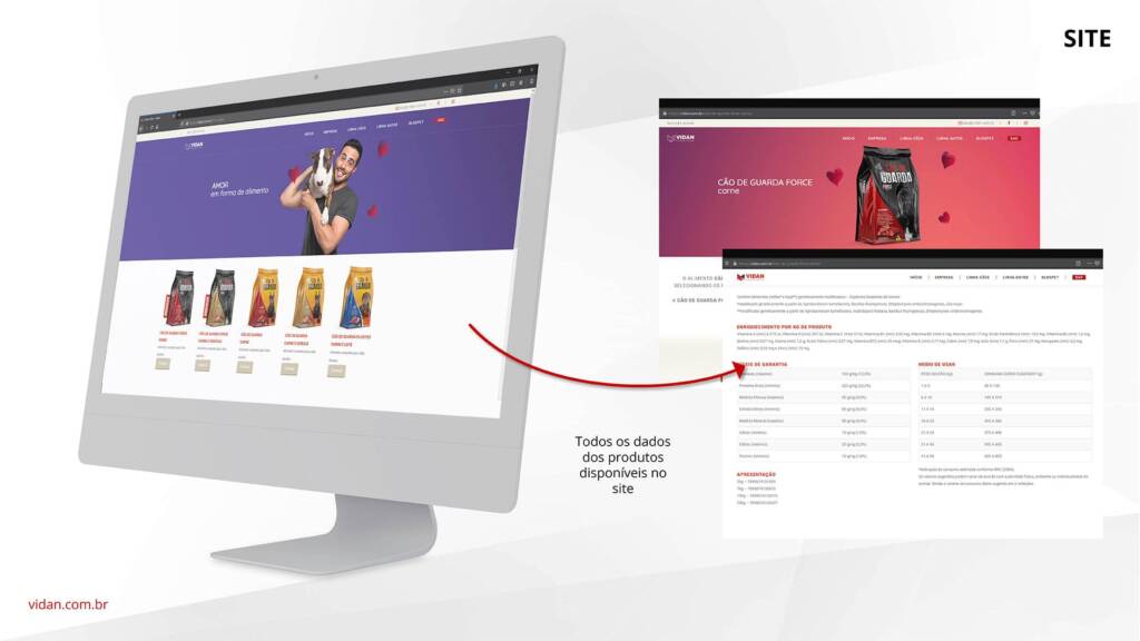 Para a Vidan Nutrição Alimentos, foi desenvolvido um projeto integrado que envolveu site, SAC 2.0 e embalagens, conectando estratégia, design e experiência.